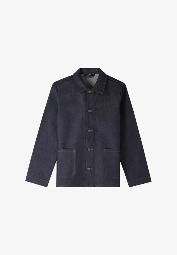 A.P.C. Jacke Keroulan im Workwear-Stil aus verwaschenem Indigo-Denim. Nicht gefüttert.