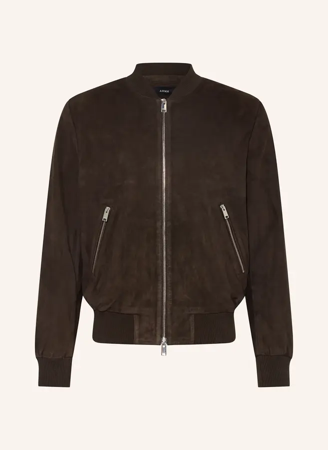 Arma Lederblouson Didier in braun. Hochwertigen Veloursleder mit Rippstrick-Details. Ziegenleder. Fällt der Größe entsprechend kleiner aus.